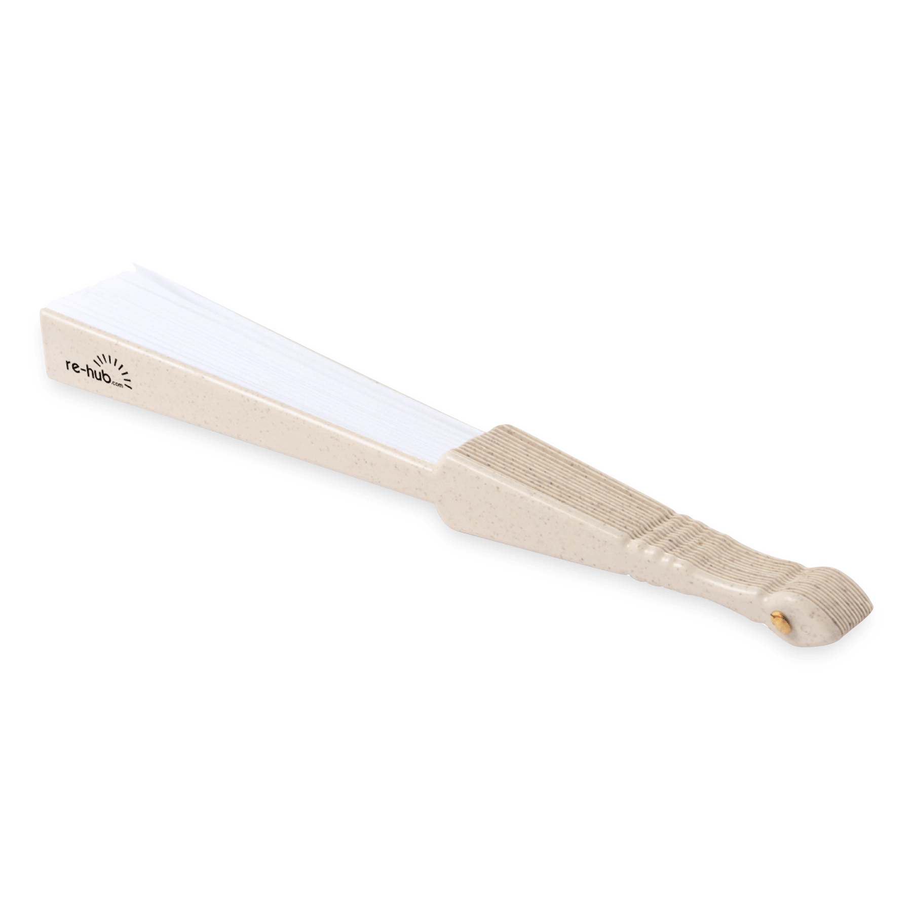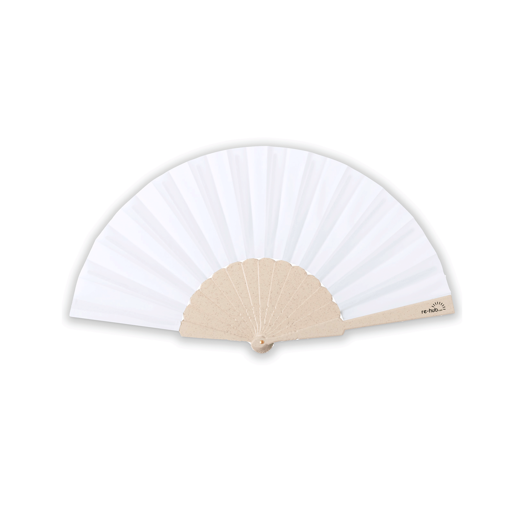 Faltfächer in RPET-Polyester mit Bambusfaserstäbchen. Lieferung in einer Kraftpapier Box