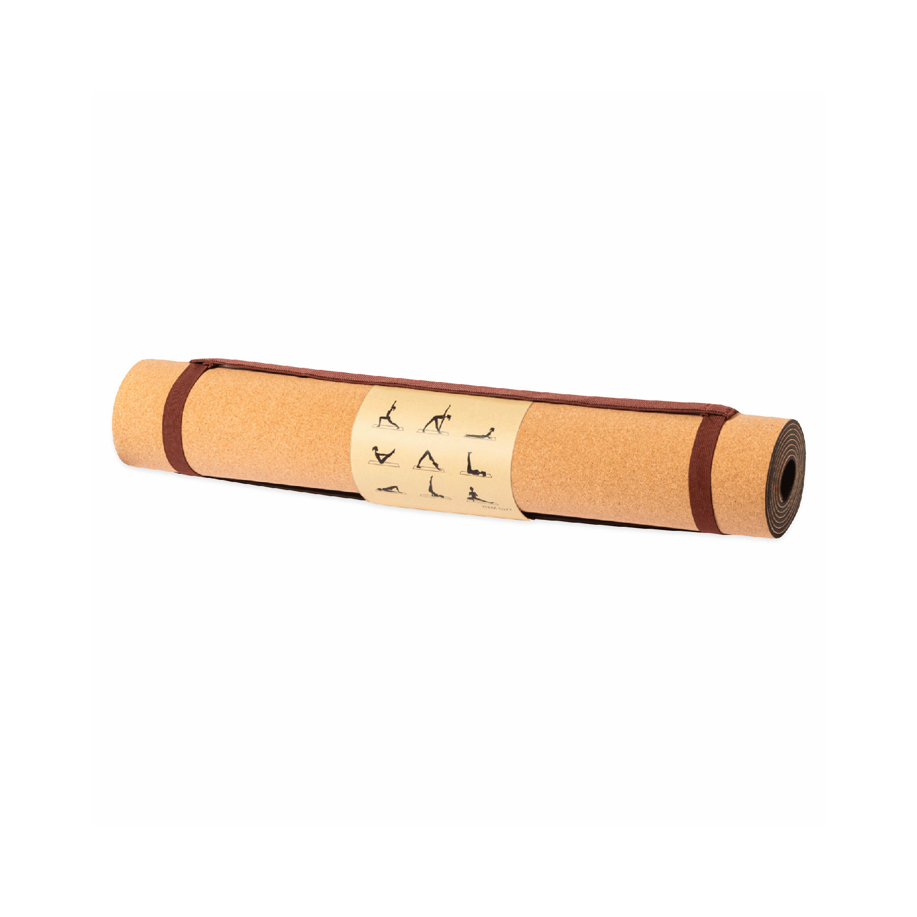 Yogamatte aus Naturkork mit Kraftpapierband und Schultergurt
