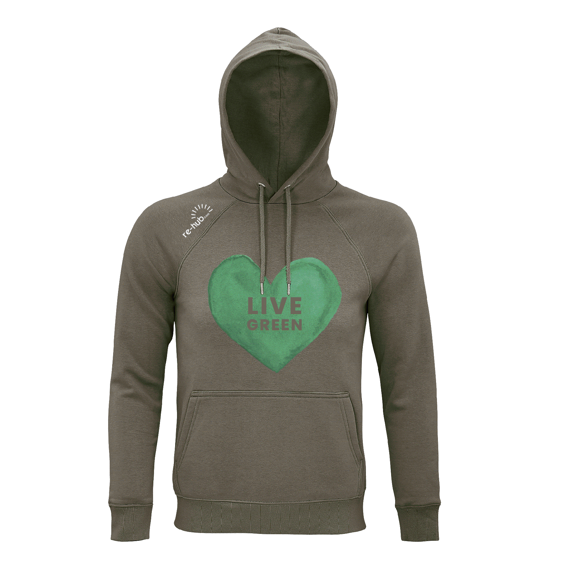 DAMEN SWEATSHIRT GRÜN HERZ MOTIV 80 % Bio-Baumwolle – 20 % recyceltes Polyester.